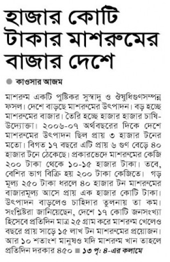 ভবিষ্যৎ কৃষি ব্যবস্থা রুপান্তরে মাশরুম চাষ সম্প্রসারণের বিকল্প নাই- কৃষিবিদ আব্দুর রহিম